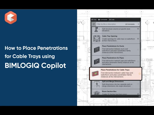 With BIMLOGIQ Copilot, your Revit AI assistant, cable tray penetrations are placed automatically, precisely, and in full alignment with project standards. Watch the video below to see this feature in action.