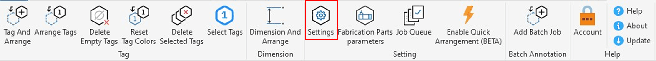 1. Click the Settings button in the Smart Annotation ribbon to open the Settings panel.