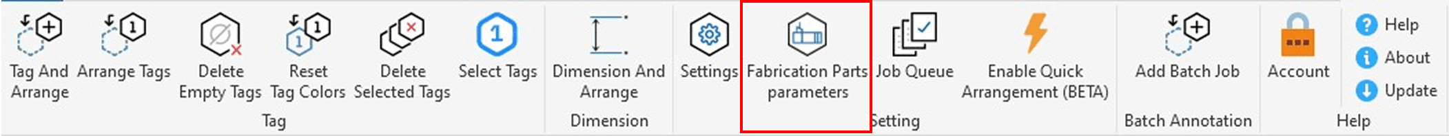 Click Fabrication Parts Parameters from the Smart Annotation ribbon to open the dedicated panel.